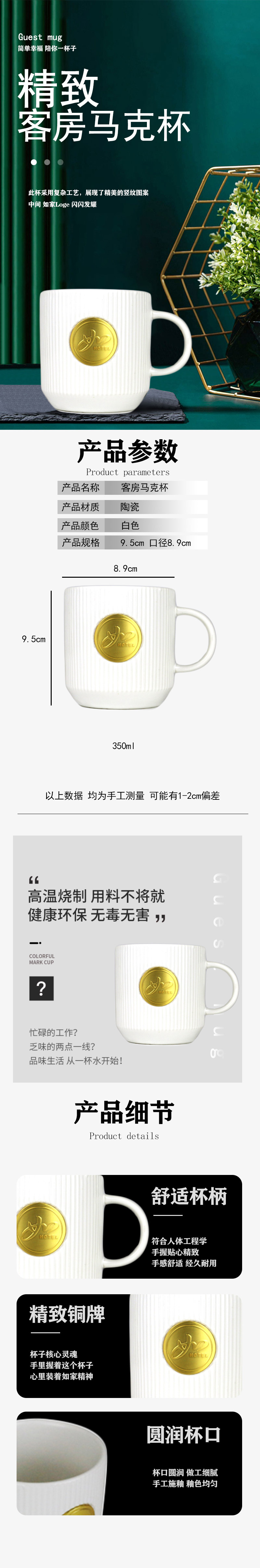 RJ-酒店用品-马克杯/客房/亚光白/铜牌/陶瓷杯/如家精选4.0